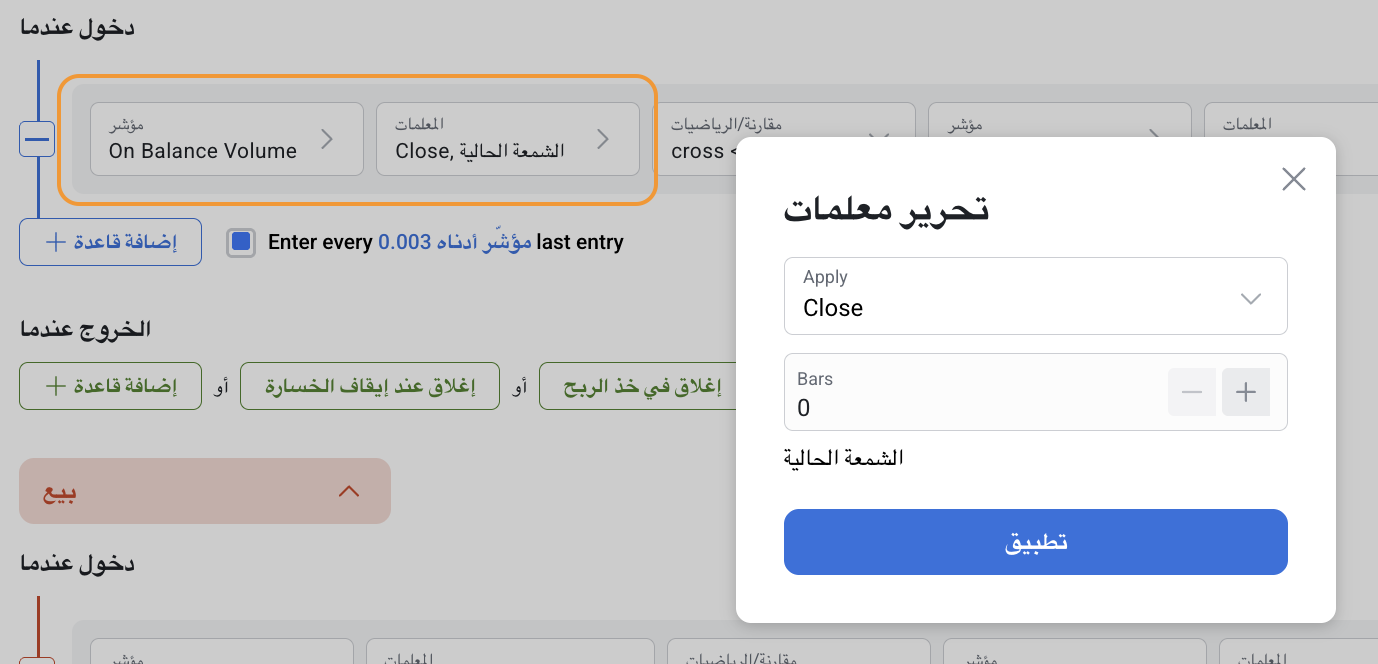 يمكن استخدام On Balance Volume بشكل منفصل أو مع مؤشرات أخرى في RoboBuilder.