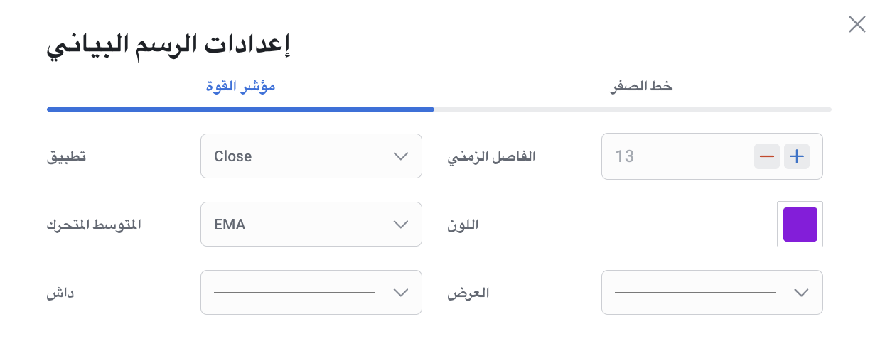 عادةً ما يُحسب مؤشر القوة على 13 فترة، لكن يمكن تعديلها حسب الرغبة. كلما زاد عدد الفترات، تصبح الحركة أكثر سلاسة، ويفضلها عادةً المتداولون على المدى الطويل.
