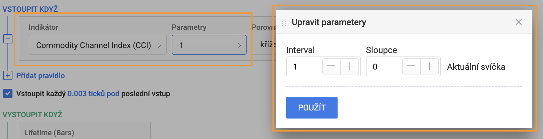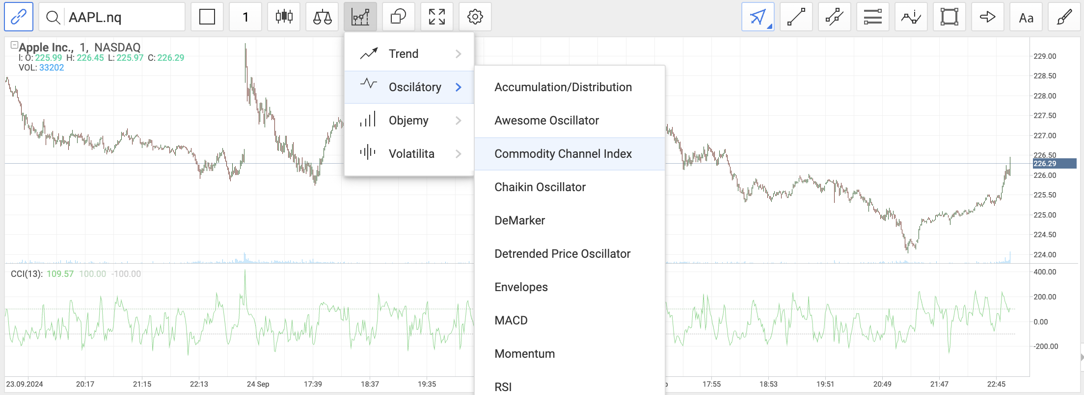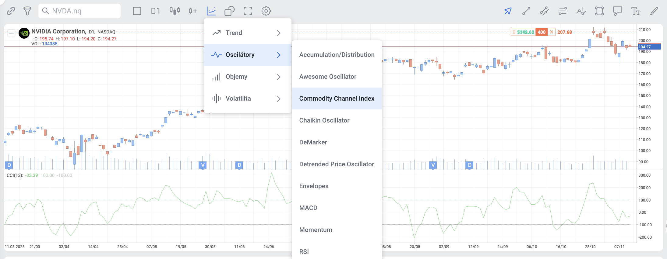 Index komoditního kanálu - (CCI) lze použít jak samostatně, tak společně s dalšími indikátory v nástroji pro tvorbu strategií.
