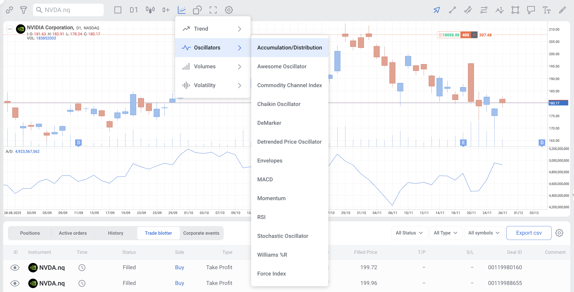 Akumulační/distribuční linie slouží k vyhodnocování cenových trendů a k potenciálnímu odhalení nadcházejících obratů.