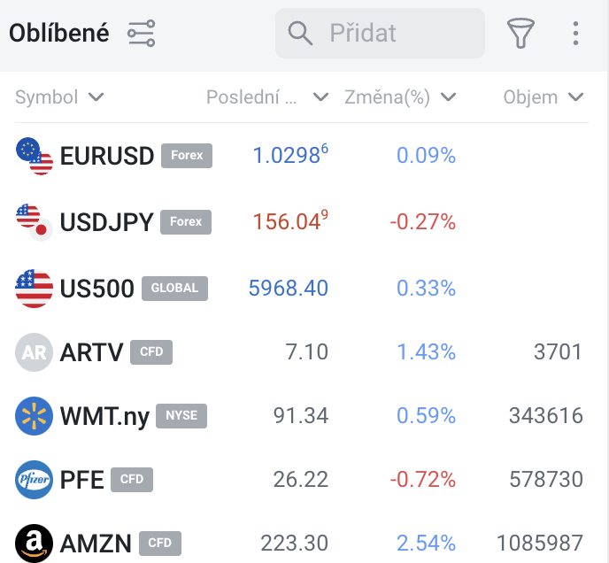 Popis sekce terminálu – Watchlisty