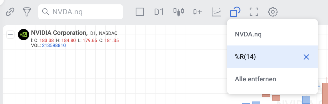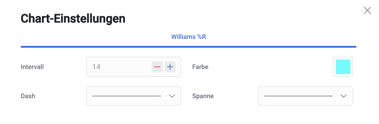 Der Indikator bewegt sich immer innerhalb des Bereichs 0 bis -100, unabhängig davon, wie stark ein Wertpapier steigt oder fällt.