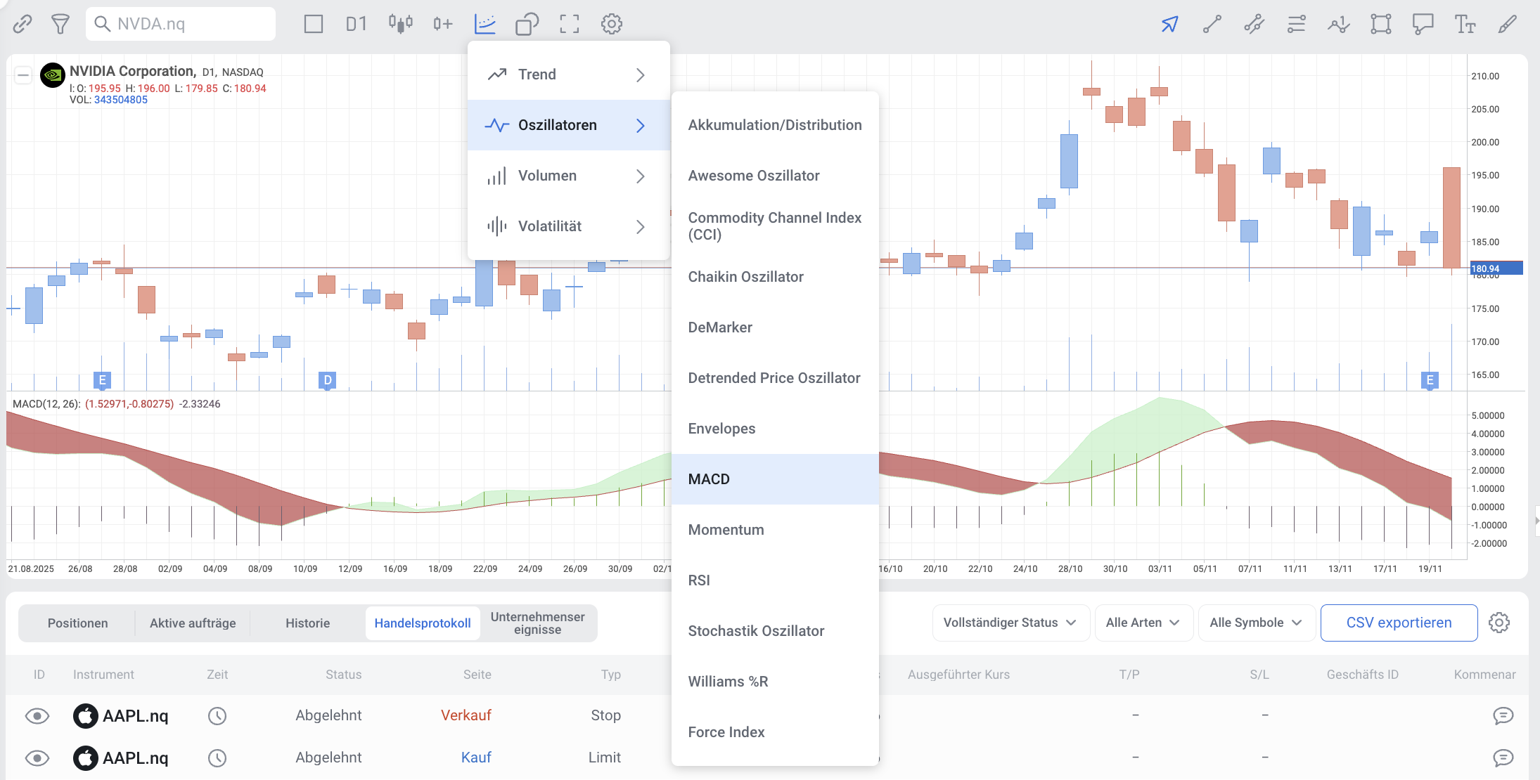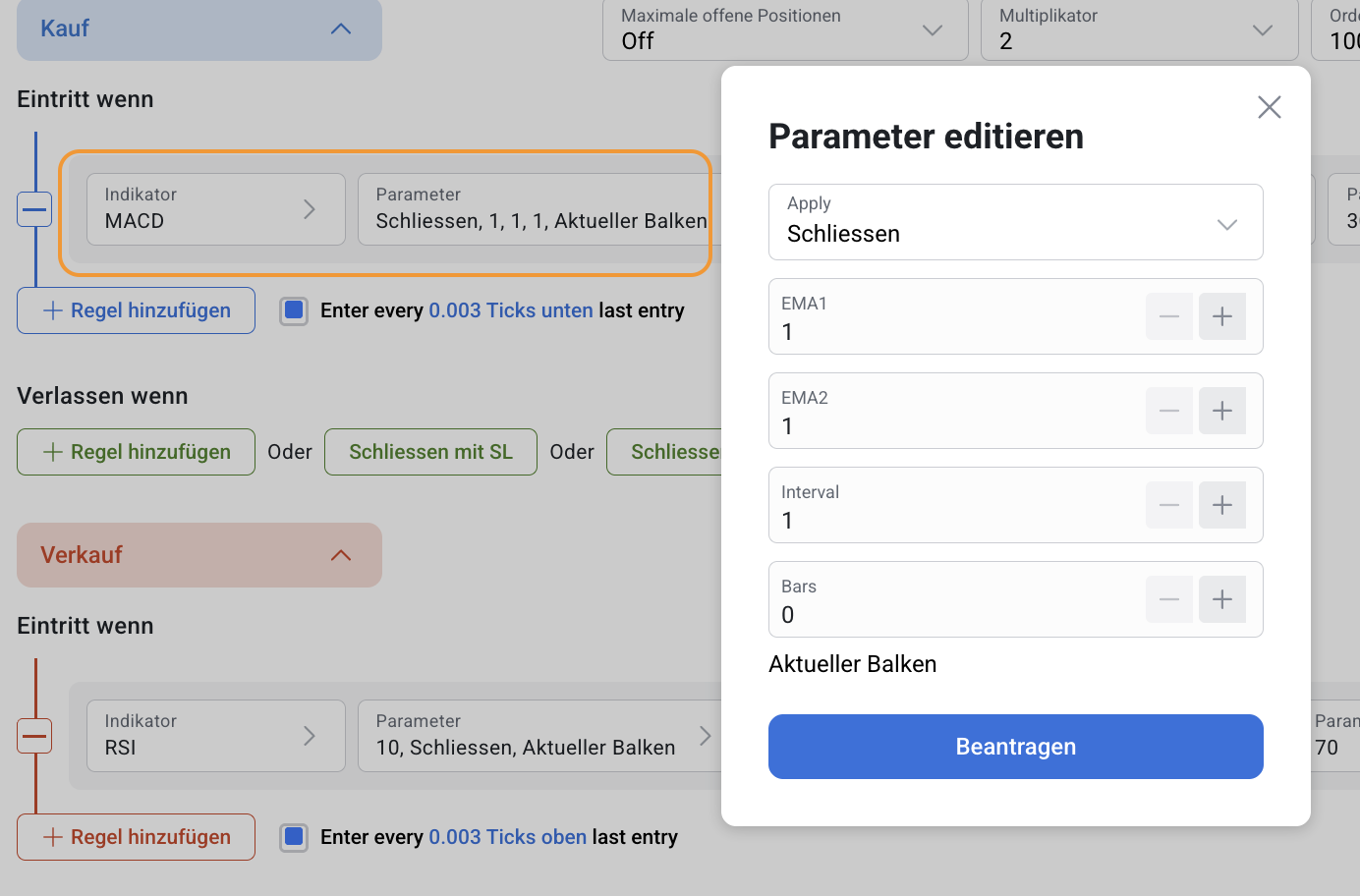 Der MACD kann sowohl einzeln als auch in Kombination mit anderen Indikatoren im RoboBuilder verwendet werden.
