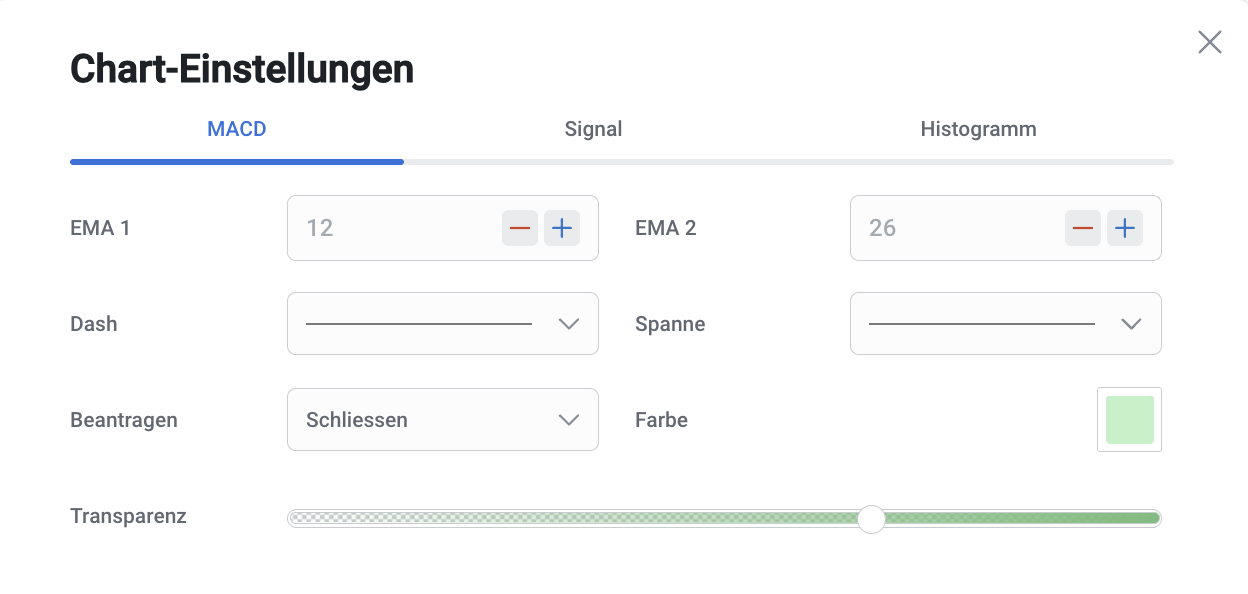 Die MACD-Linie schwankt um die Nulllinie, die auch als Mittellinie bezeichnet wird. Solche Kreuzungen zeigen an, dass der 12-Tage-EMA den 26-Tage-EMA geschnitten hat. Die Richtung des Signals hängt dabei von der Richtung des jeweiligen Kreuzes ab. Positive MACD-Werte bedeuten, dass der 12-Tage-EMA über dem 26-Tage-EMA liegt. Die Werte steigen, je weiter sich der kürzere EMA vom längeren entfernt – ein Hinweis auf zunehmendes Aufwärtsmomentum. Negative Werte zeigen das Gegenteil: Der 12-Tage-EMA liegt unter dem 26-Tage-EMA, und zunehmende negative Werte deuten auf stärkeres Abwärtsmomentum hin.
