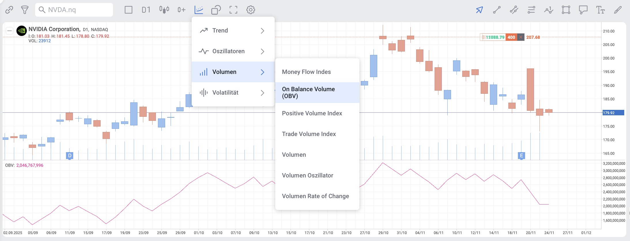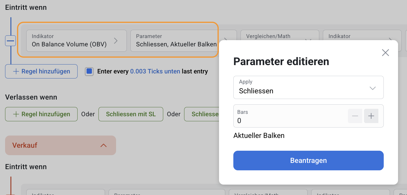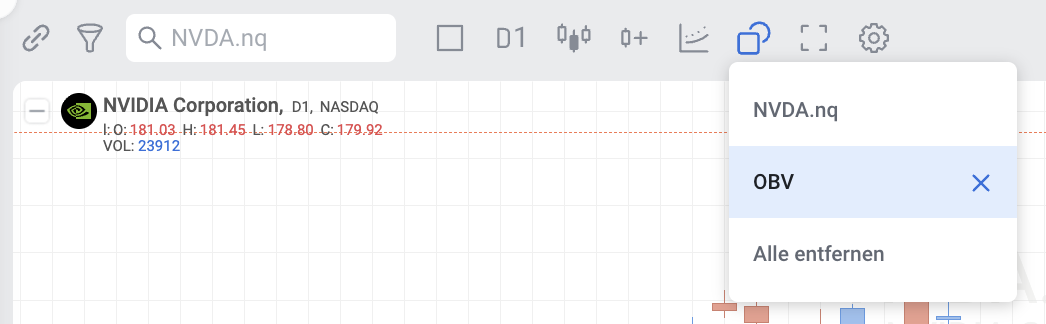 On Balance Volume kann sowohl eigenständig als auch in Kombination mit anderen Indikatoren im RoboBuilder verwendet werden.