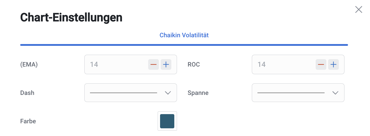 In der Praxis wird der Chaikin Volatility Indicator meist zusammen mit einem gleitenden Durchschnittssystem (Moving Average) und über einen festgelegten Zeitraum, typischerweise 10 Tage, verwendet.