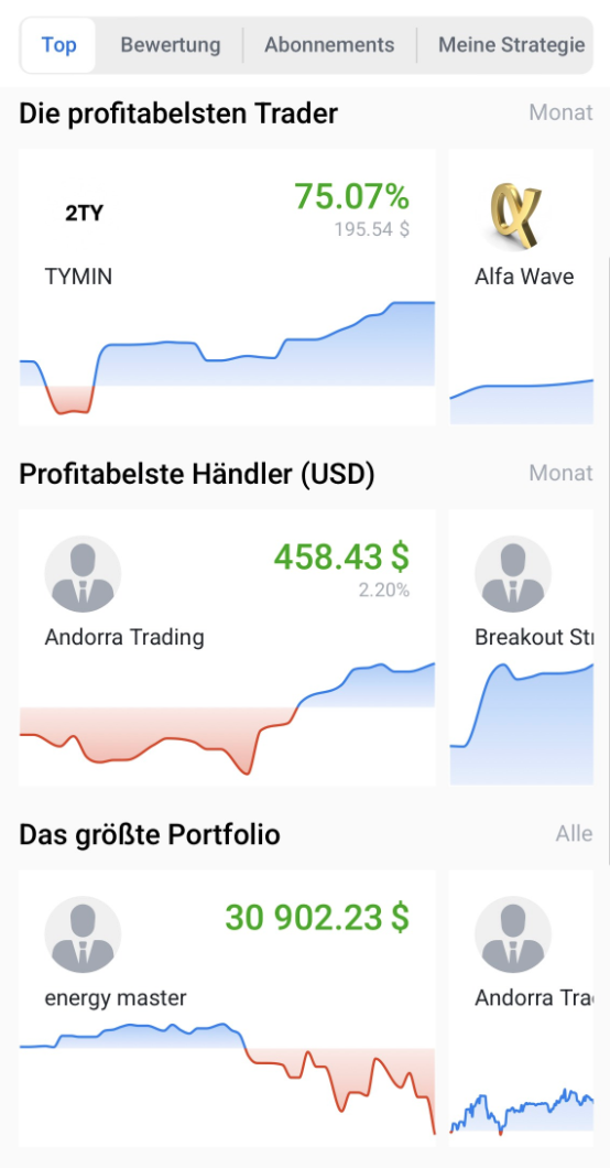 4.1 Die profitabelsten Trader, das größte Portfolio oder die am häufigsten kopierten Trader für einen bestimmten Zeitraum (Woche, zwei Wochen, Monat usw.)