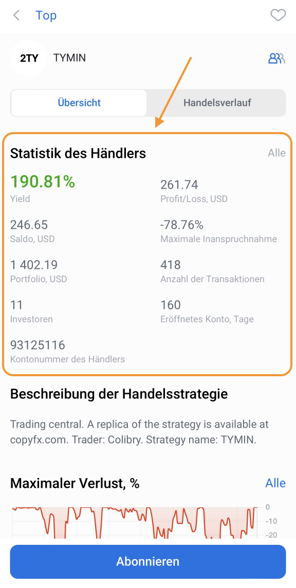 Die Trader-Statistik zeigt die folgenden statistischen Daten an: