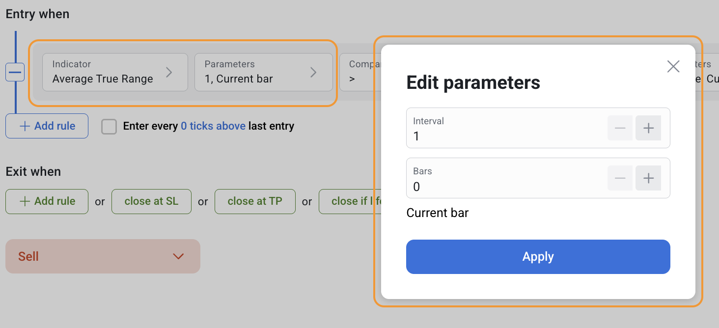 Average True Range can be used both separately and together with other indicators in the RoboBuilder.