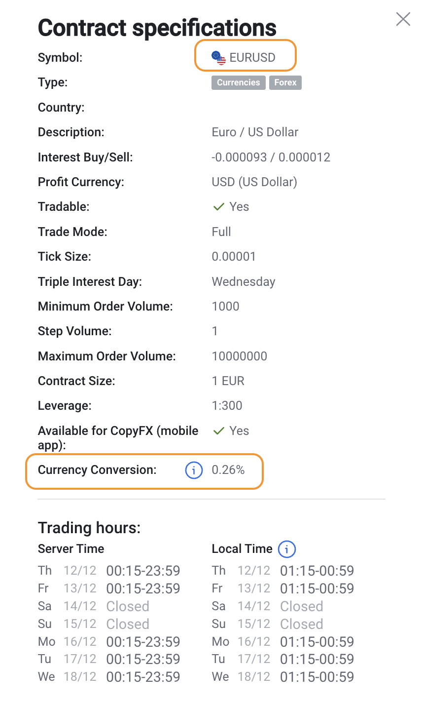 Leverage: the leverage ratio for the financial instrument. Read more about leverage here.