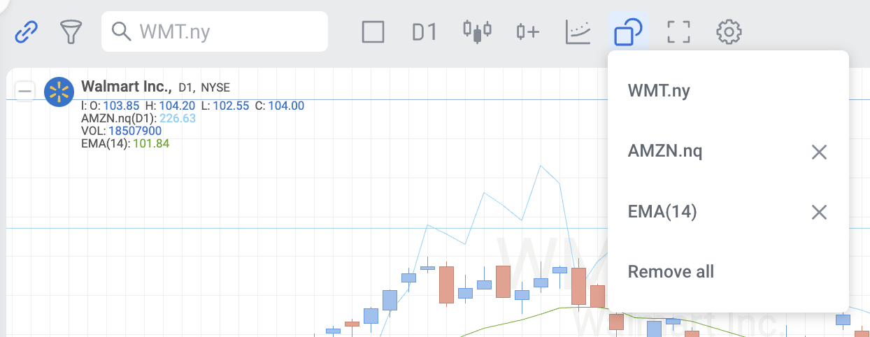 6. Add new instruments to the current chart to compare dynamics.