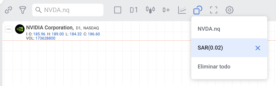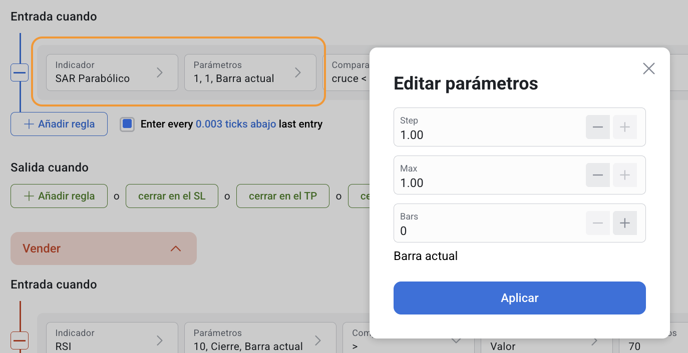 El SAR parabólico se puede utilizar tanto por separado como junto con otros indicadores en el Creador de Estrategias.