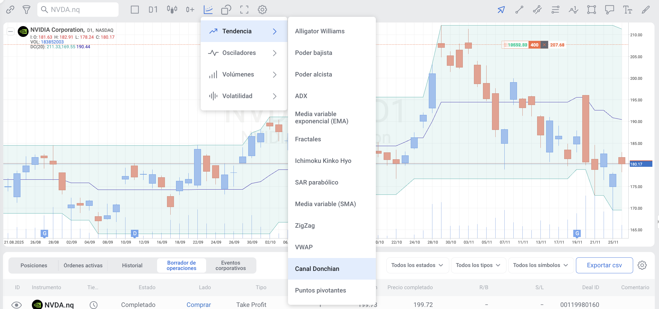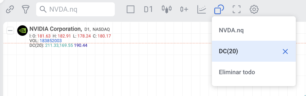 CanalDonchian Medio = (CanalDonchian Superior + CanalDonchian Inferior) / 2.