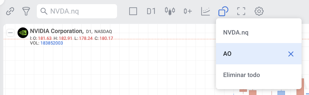 AO = SMA (PRECIO MEDIANO, 5) — SMA (PRECIO MEDIANO, 34),
