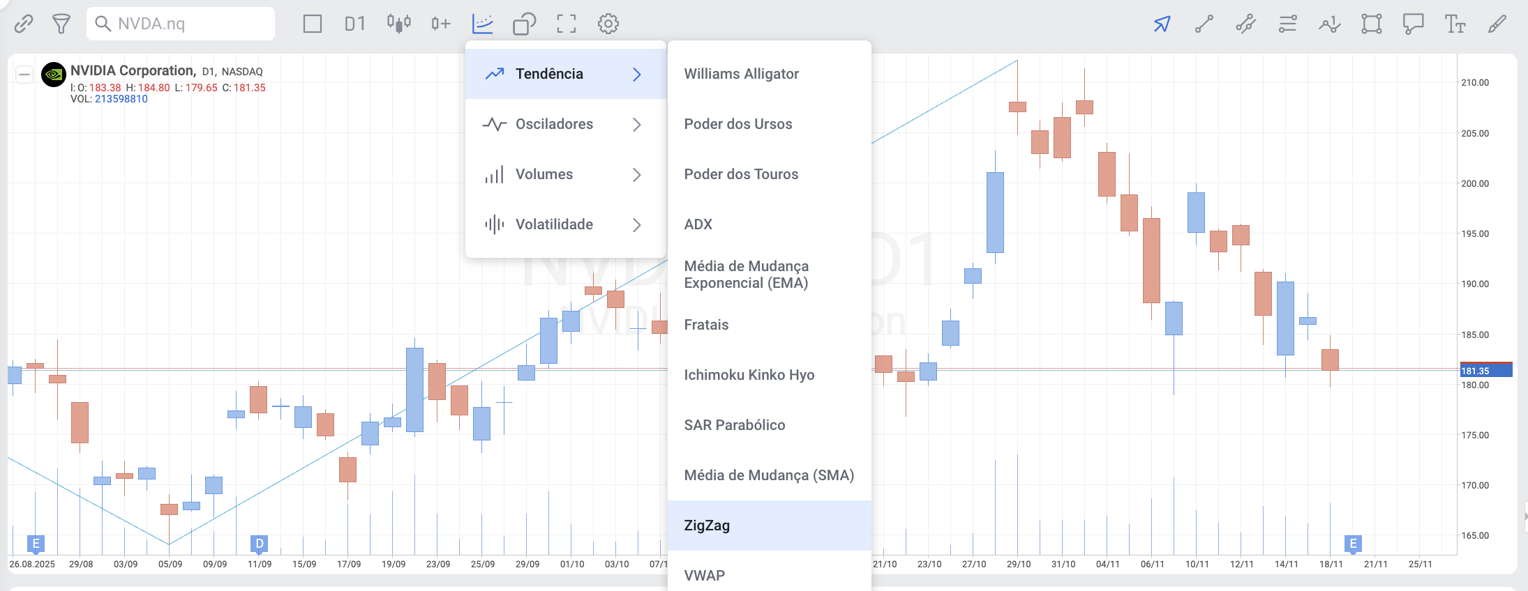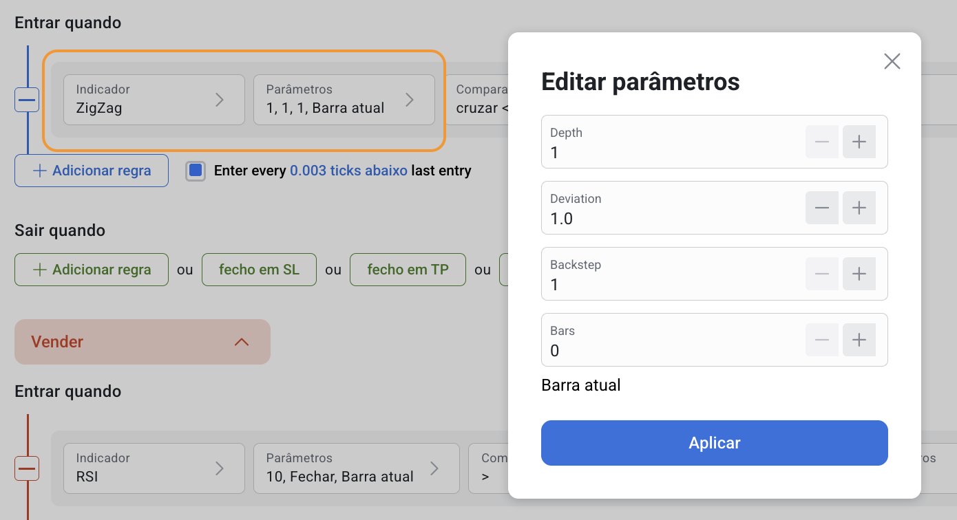 O ZigZag pode ser utilizado separadamente e em conjunto com outros indicadores no RoboBuilder.