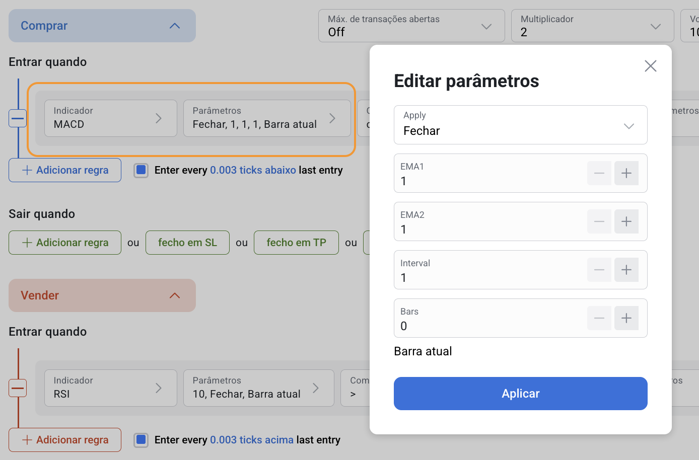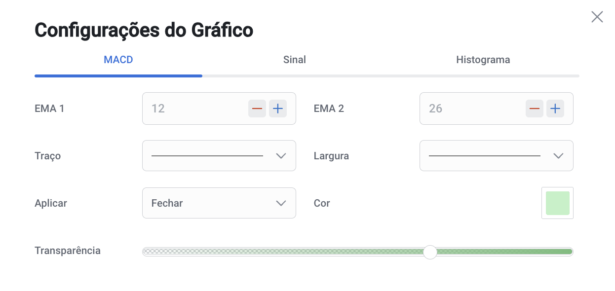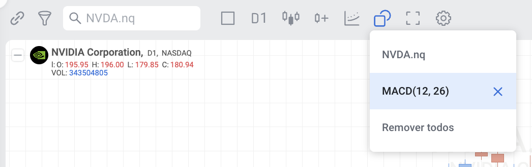 A MACD pode ser utilizada separadamente e em conjunto com outros indicadores no Builder.