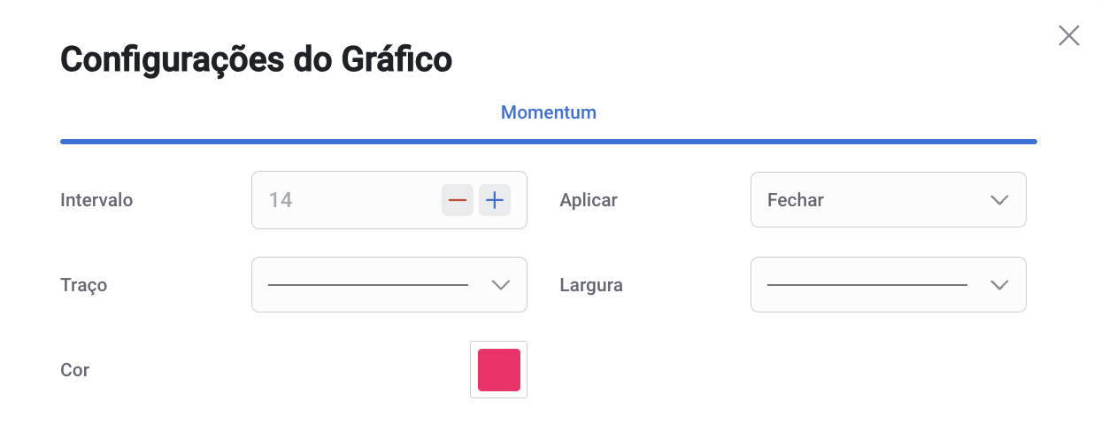 - O Momentum mostra a taxa de variação do movimento dos preços ao longo de um período de tempo, para ajudar os investidores a determinar a força de uma tendência.