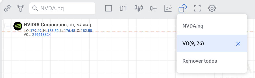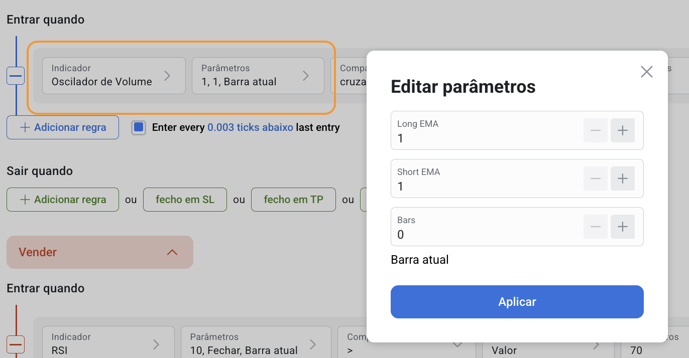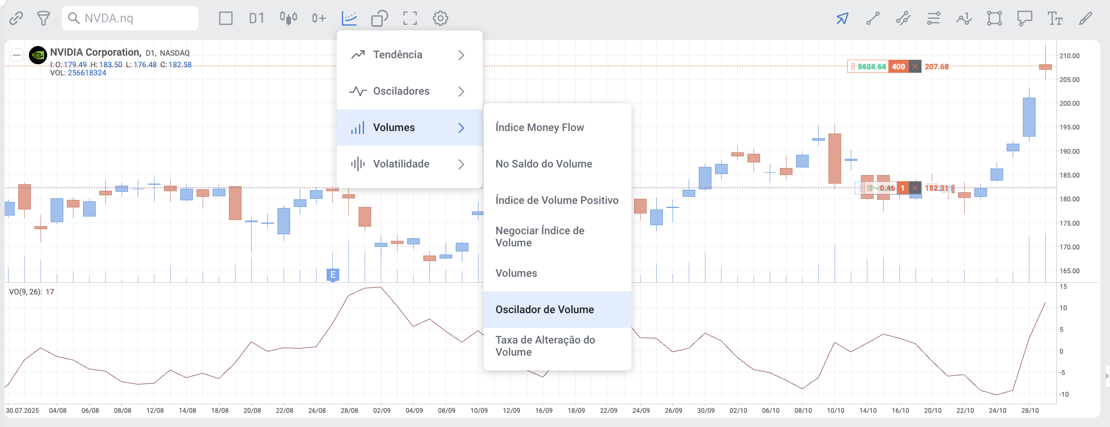 O Oscilador de Volume pode ser utilizado separadamente e em conjunto com outros indicadores no RoboBuilder.
