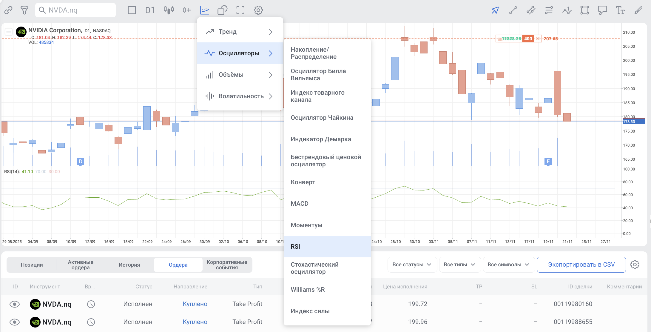С более подробным описанием индикатора Relative Strength Index - RSI (Индекс относительной силы) и использованием его сигналов для торговли можно ознакомиться здесь.