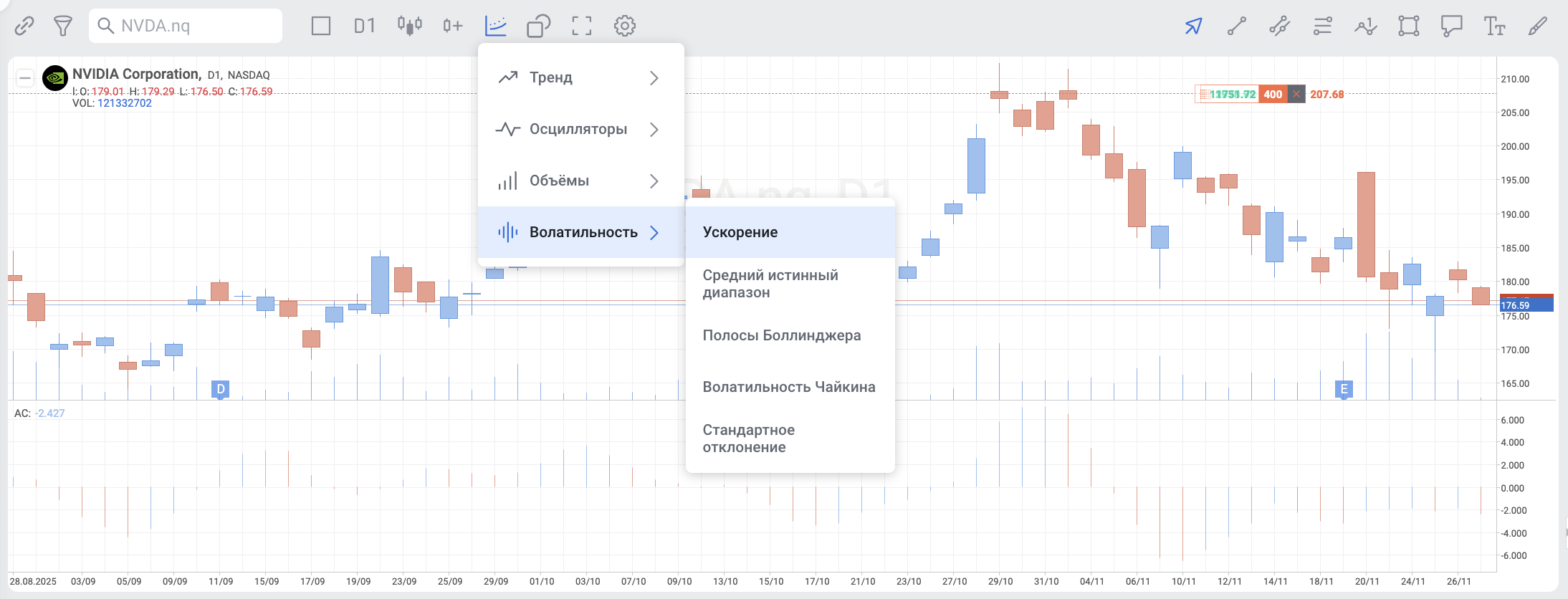 Индикатор ускорения - Accelerator Oscillator (AC) относится к группе осциляторов, представляет собой показатель отображения замедления или ускорения движущей силы торгуемого актива.