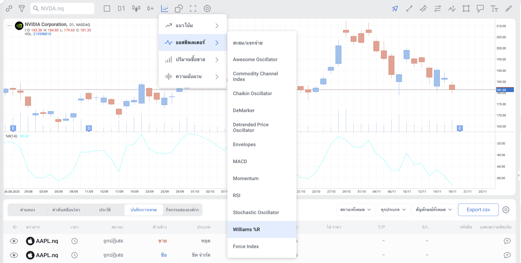 พัฒนาโดย Larry Williams, Williams %R เป็นตัวชี้วัดโมเมนตัมที่เป็น ภาพสะท้อนแบบกลับด้านของ Fast Stochastic Oscillator