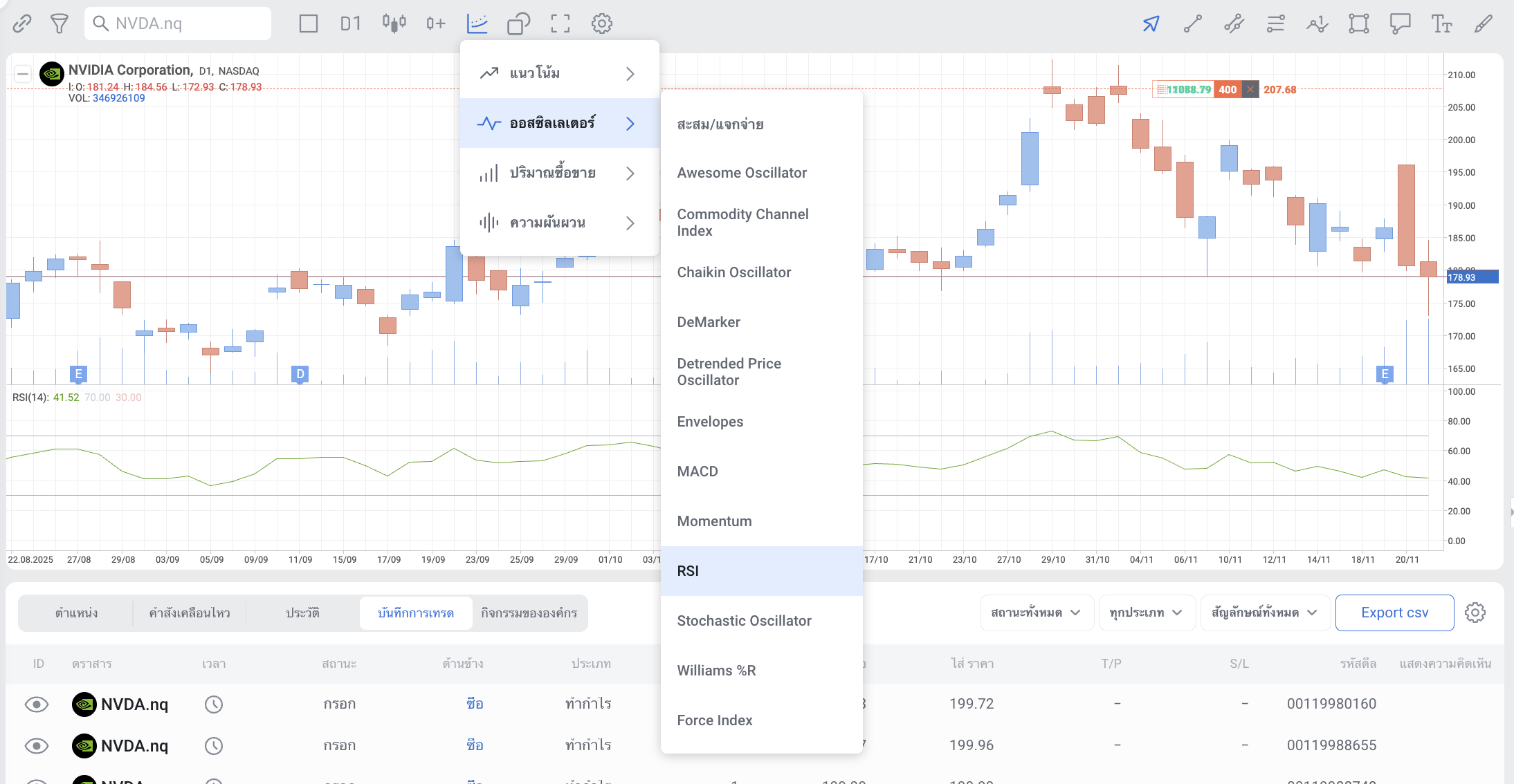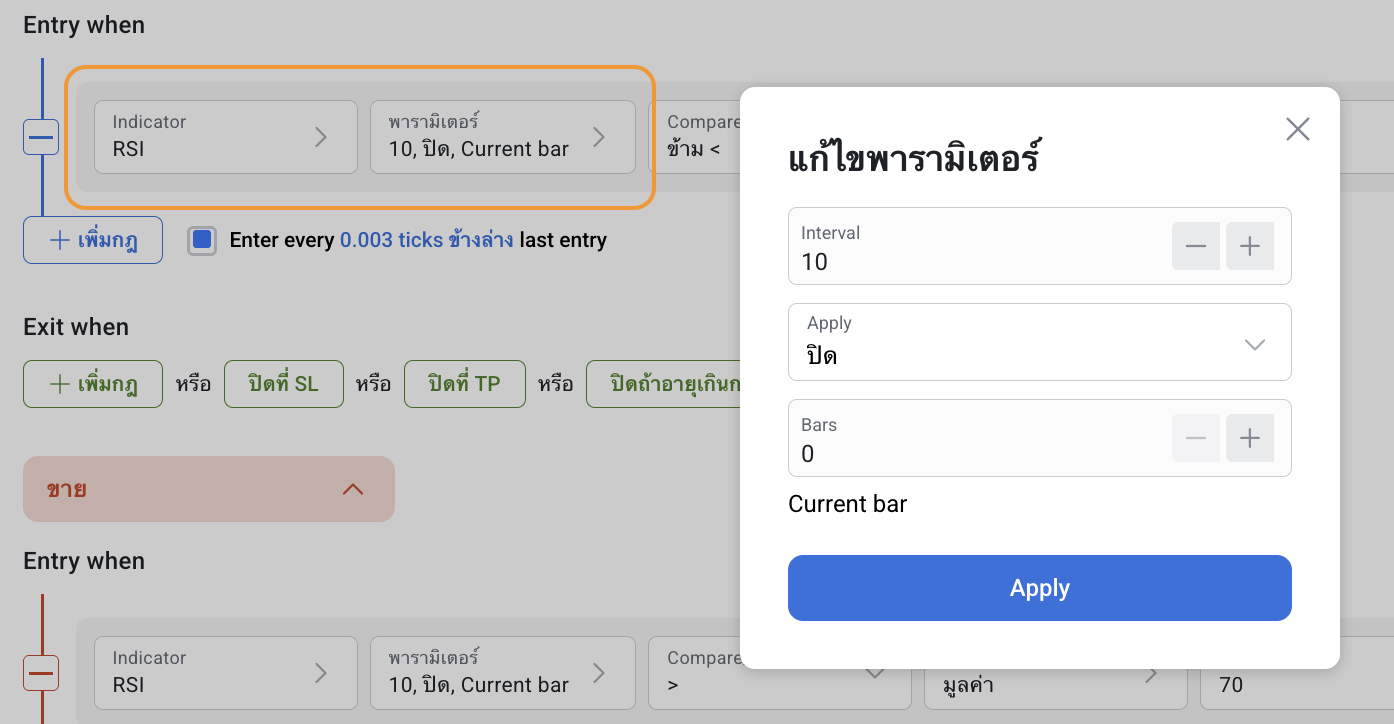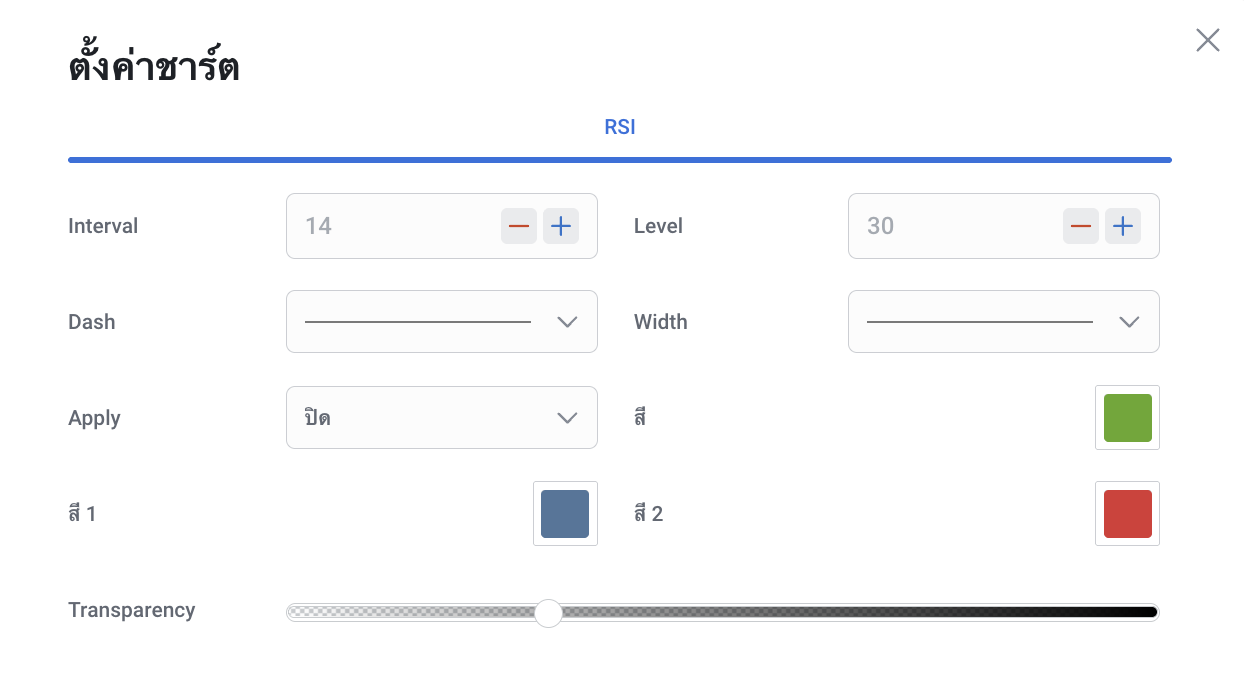 Relative Strength Index (RSI) สามารถใช้งานได้ทั้งแบบเดี่ยวและร่วมกับอินดิเคเตอร์ตัวอื่นใน RoboBuilder