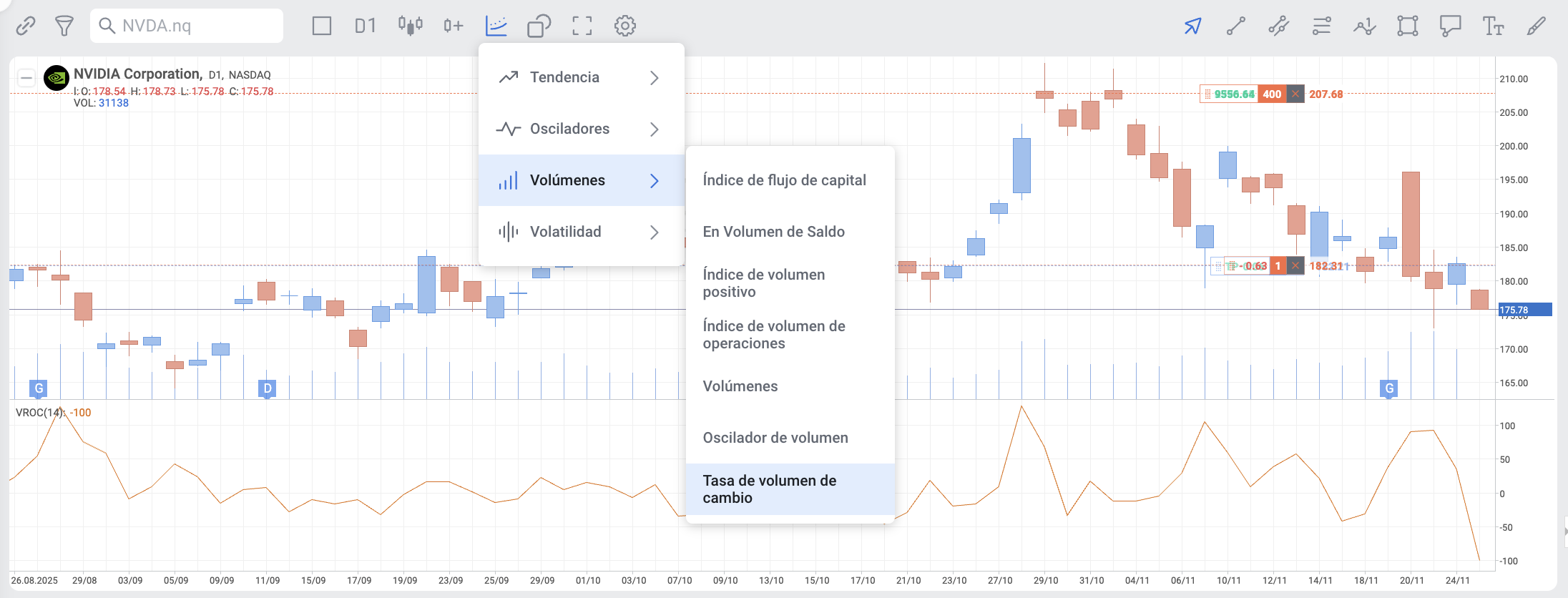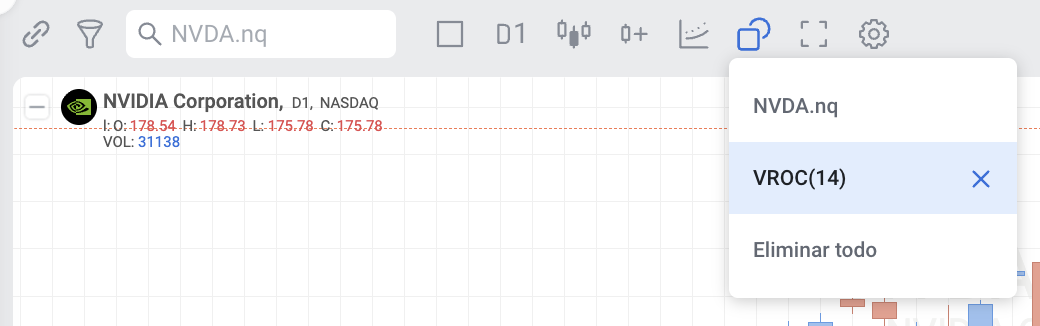 ความหมายคือ หากปริมาณในวันนี้สูงกว่าปริมาณเมื่อ n วันก่อน อัตราการเปลี่ยนแปลงจะเป็นค่าบวก หากปริมาณต่ำกว่า V-ROC จะเป็นค่าลบ ทำให้เราสามารถมองเห็นความเร็วที่ปริมาณเปลี่ยนแปลง