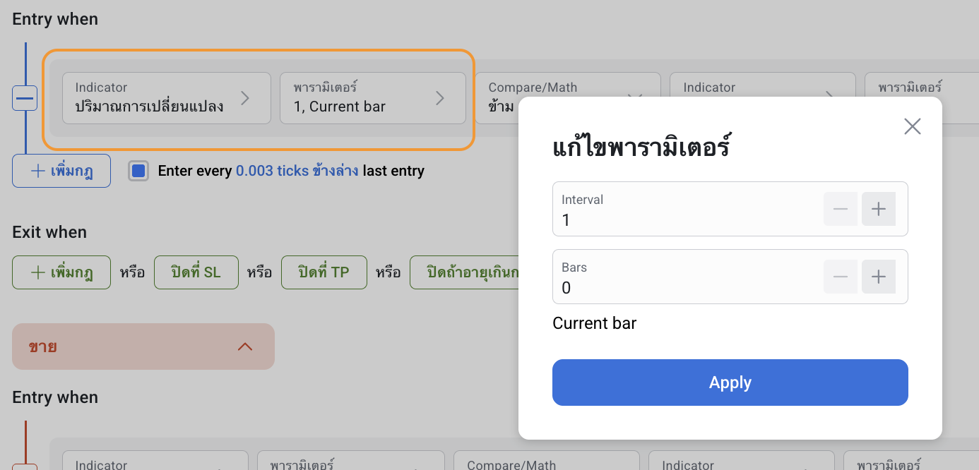 Volume Rate Of Change สามารถใช้งานได้ทั้งแบบแยกเดี่ยวหรือร่วมกับตัวชี้วัดอื่น ๆ ใน RoboBuilder
