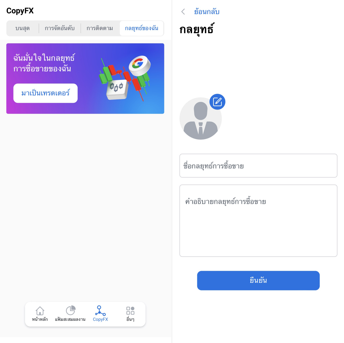 1. เทรดเดอร์ต้องสร้างกลยุทธ์ใหม่ในแอป StocksTrader โดยใช้ Copy Trading